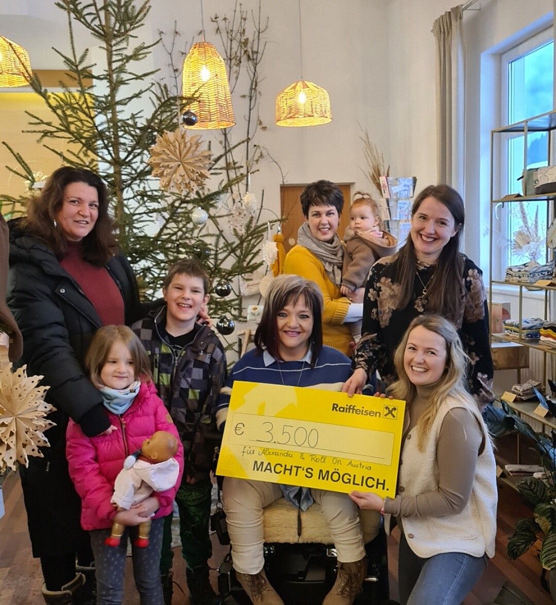 Die jungen Unternehmerinnen Anna & Monika von Tagträume und die Firma Wimmer Tore aus St. Martin bei Lofer, machen dem Verein RollOn Austria und dem Schüler Alexander ein vorzeitiges Weihnachtsgeschenk.