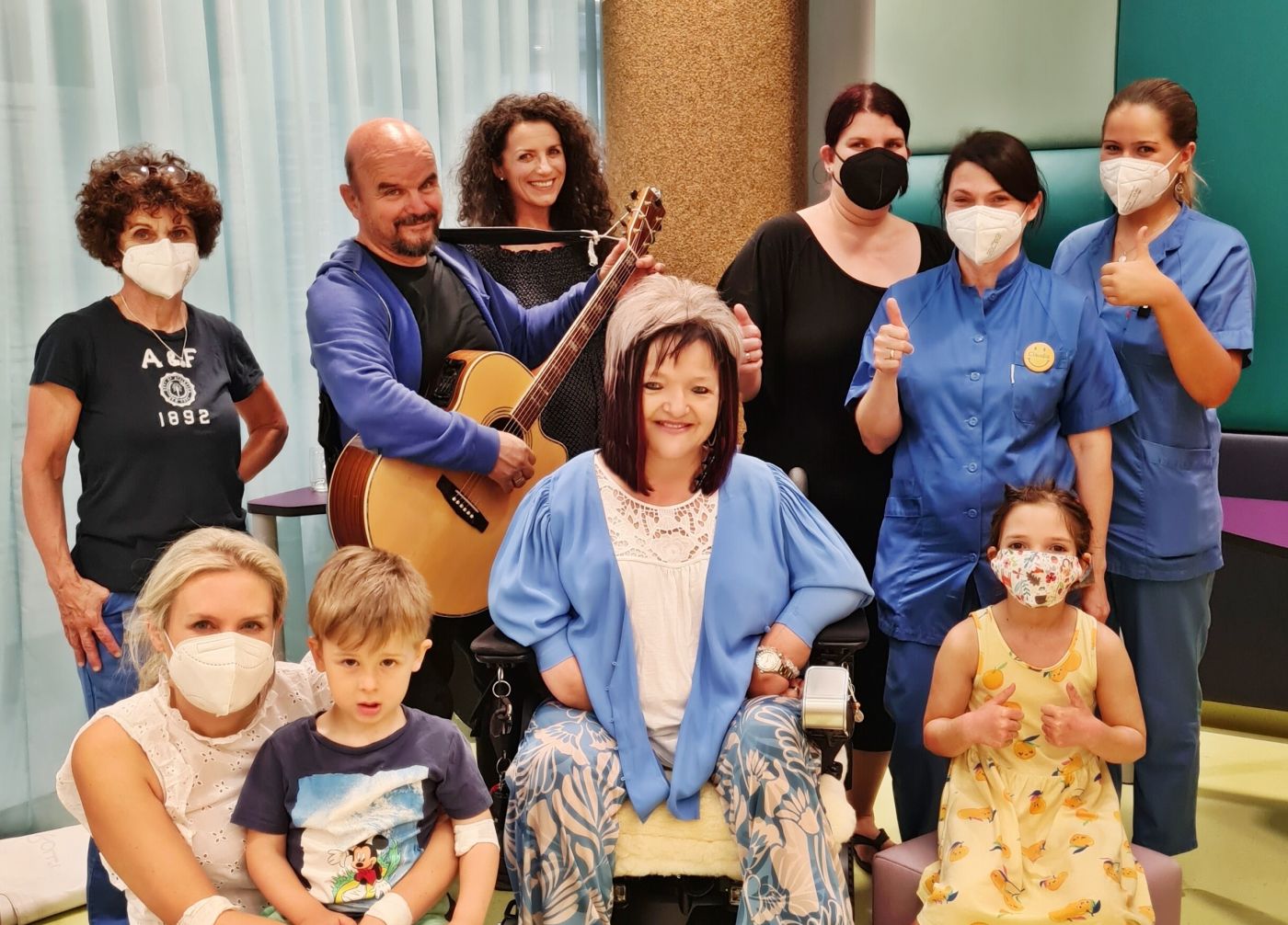 Rote Zauberstiefel und BLUATSCHINK überraschen Evelyne & Alexis in der Kinderklinik Innsbruck