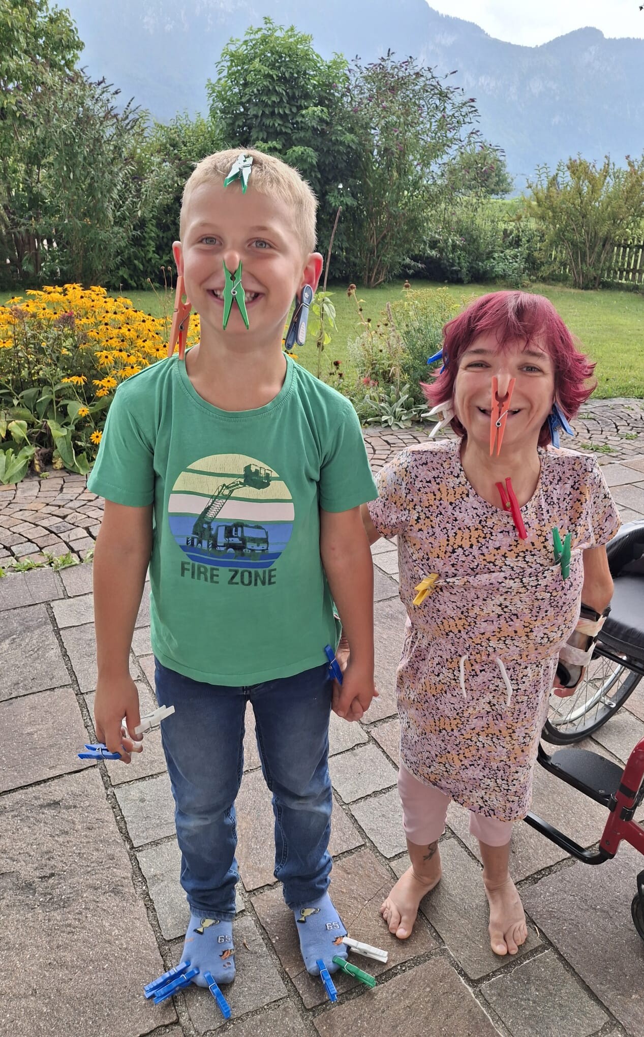Stefanie Gründler mit ihrem Neffen. Sie ist 1,10 Meter groß und kann wenige Schritte ohne ihren Rollstuhl gehen