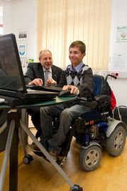 Vor diesem so wichtigen Erfolgserlebnis durchlebte die Familie Egger jedoch einen monatelangen Spießrutenlauf, wie die Mutter des Imster HAK-Schülers, Angelika Egger, zu berichten weiß: „Wir haben uns lange bemüht, einen Praktikumsplatz für Alois zu bekommen. Mein Sohn ist auf einen Elektrorollstuhl angewiesen – und obwohl das Bedienen der Computertastatur, Telefonieren oder Botengänge für ihn gut zu erledigen sind, scheiterte es meistens an der fehlenden Barrierefreiheit.