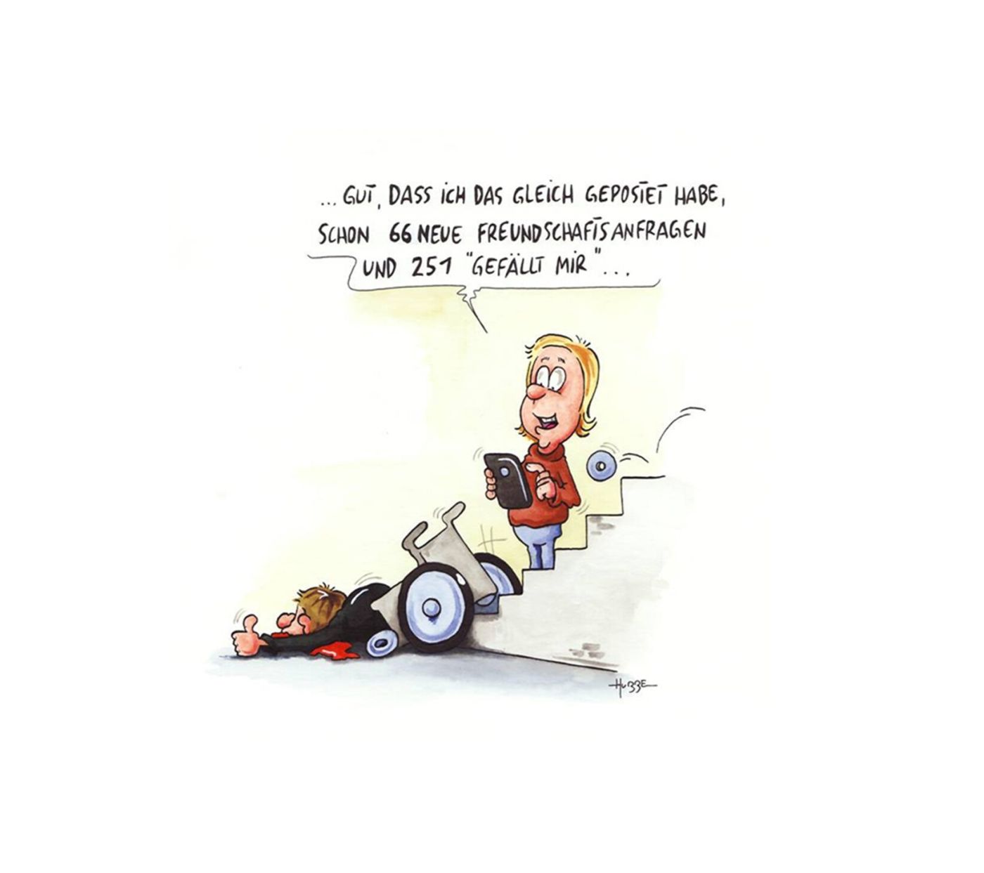 Phil Hubbe, leidenschaftlicher Karikaturist und Hertie-Preisträger. 1985 erkrankte er an Multipler Sklerose. Seitdem hat er seine Erkrankung und auch andere körperliche Behinderungen zum Thema seiner Cartoons gemacht.
