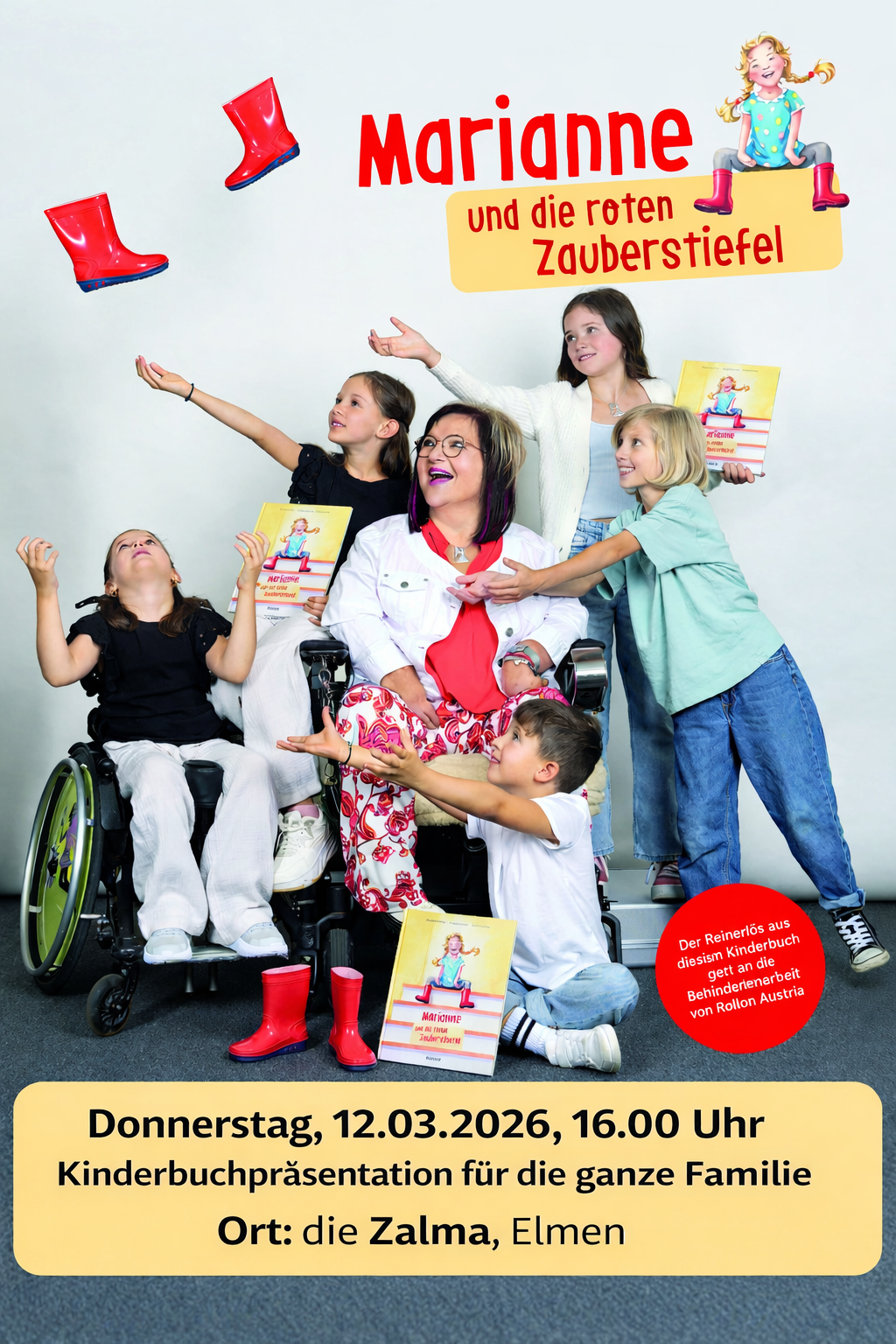 „Marianne und die roten Zauberstiefel“ erzählt die wahre Geschichte eines Mädchens, das trotz körperlicher Einschränkungen einen großen Traum hat: Sie möchte allein in den ersten Stock gelangen – eine Herausforderung, die für sie so schwer ist wie ein kleines Abenteuer im Alltag. Erst als sie ein Paar rote Gummistiefel bekommt, die nicht rutschen, rückt ihr Traum in greifbare Nähe und das große Erlebnis beginnt.
