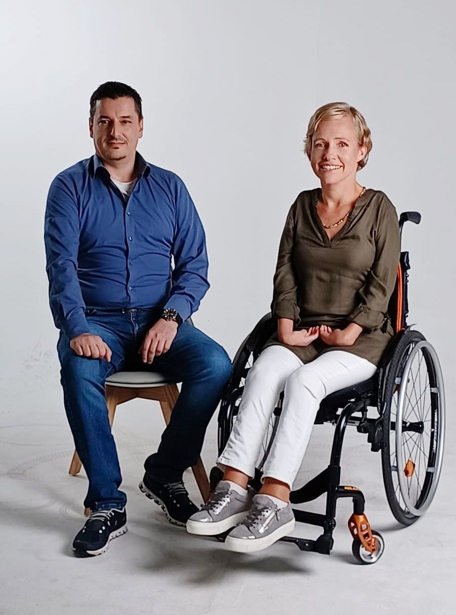 Sabrina kam vor 39 Jahren mit Arthrogryposis multiplex congenita (AMC) zur Welt, was bedeutet, dass ihre Gelenke an Armen und Beinen versteift sind. Alles andere als steif, wenn auch sehr strukturiert, ist ihr Alltag. Die lebensfreudige Vorarlbergerin ist nicht nur Koordinatorin der Servicestelle Persönliche Assistenz in Vorarlberg, sondern auch Mutter eines achtjährigen Jungen. Ihren Lebensgefährten Daniel Studer lernte sie vor 14 Jahren kenne, übers Internet. „Ich habe ihr Portaitfoto gesehen und ihre Ausstrahlung und ihr Lächeln haben mich fasziniert. In ihrem Profil erzählte sie von ihrer Behinderung und im ersten Moment war mir das zu viel. Aber irgendwann kamen wir doch in Kontakt und dann habe ich begonnen zu recherchieren. Ich habe Fotos von ihr gefunden, wo ich ihren ganzen Körper gesehen habe, und interessanterweise wurde die Barriere in meinem Kopf immer kleiner, die Neugierde dafür immer größer. Also haben wir uns getroffen“, erinnert sich Daniel Studer. Beide lachen, wenn sie an dieses erste Treffen zurückdenken, das so ganz anders ablief, als man es von einem ersten Date annehmen mag. Als Daniel Sabrina Zuhause abholen wollte, erwartete ihn nicht nur eine gespannte Sabrina, sondern gleich ihre ganze Familie. Aus dem geplanten Kinobesuch zu zweit wurde nichts, alle gingen mit. Als sie den Kinosaal betraten, hatte Daniel gleich die erste Bewährungsprobe zu bestehen. Die Plätze, die Sabrina reserviert hatte, lagen im obersten Bereich. „Wie kommst du da hoch?“ fragte Daniel. Und Sabrina antwortete verschmitzt: „Du musst mich jetzt hochtragen wie eine Braut.“ Leicht gesagt - und viel leichter getan, als Daniel sich das gedacht hätte, denn angesichts des vollen Kinosaals, der das Paar neugierig beobachtete, wurde ihm doch etwas mulmig. „Ich nahm all meinen Mut zusammen und habe sie, am ganzen Körper zitternd, hochgetragen. Es hat geklappt.“ Und während auf der Leinwand Bruce Willis langsam starb – eine recht untypische Filmwahl für ein romantisches Rendezvous, aber von Typisierungen halten Sabrina und Daniel sowieso nicht viel – nahm der gemeinsame Lebensweg von zwei Menschen seinen Anfang.